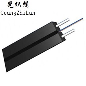 FTTH室內光纜是將光通信單元處于中心,兩側放置兩根平行非金屬加強元件(FRP),在外側再附加一根鋼絲加強元件,最后,擠制黑色或彩色低煙無鹵護套成纜
